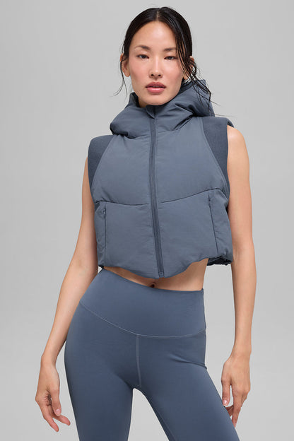 Lightweight insulation, statement silhouette. The Fast Lane PufferVest brings a bold, sculptural edge to your cold-weather uniform. With its high neckline and sleek lines, its made to top off active sets, cargo pants, or tailoring with ease. Its the style thats as street-ready as it is studio-smart.