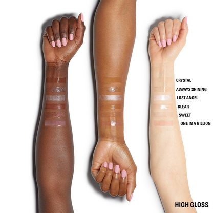 High Gloss gently softens your lips while leaving behind a mirror-shine finish and color without any stickiness