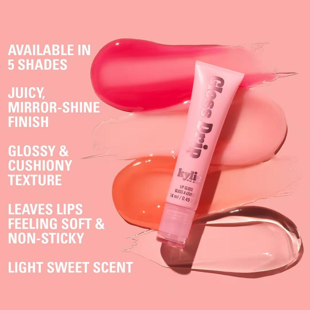 Experience the luscious KYLIE COSMETICS Gloss Drip Lip Gloss, designed to provide a reflective, mirror-shine finish for your lips. This cushiony and comfortable tinted lip gloss formula not only enhances your lips with a wet look but also keeps them feeling soft and hydrated.