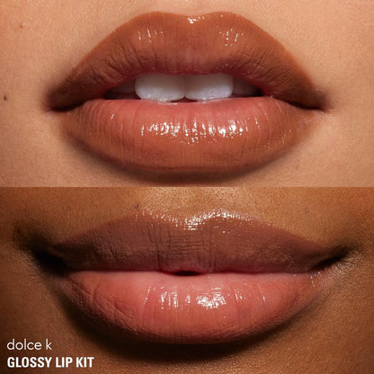 Achieve a stunning, glossy pout with the KYLIE COSMETICS Glossy Lip Kit. This all-in-one lip kit provides mirror-like shine and vibrant color, expertly sculpting, defining, and contouring your lips for a flawless finish.