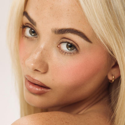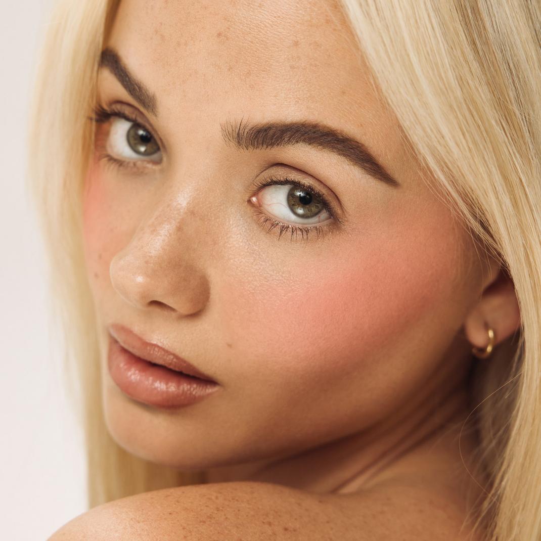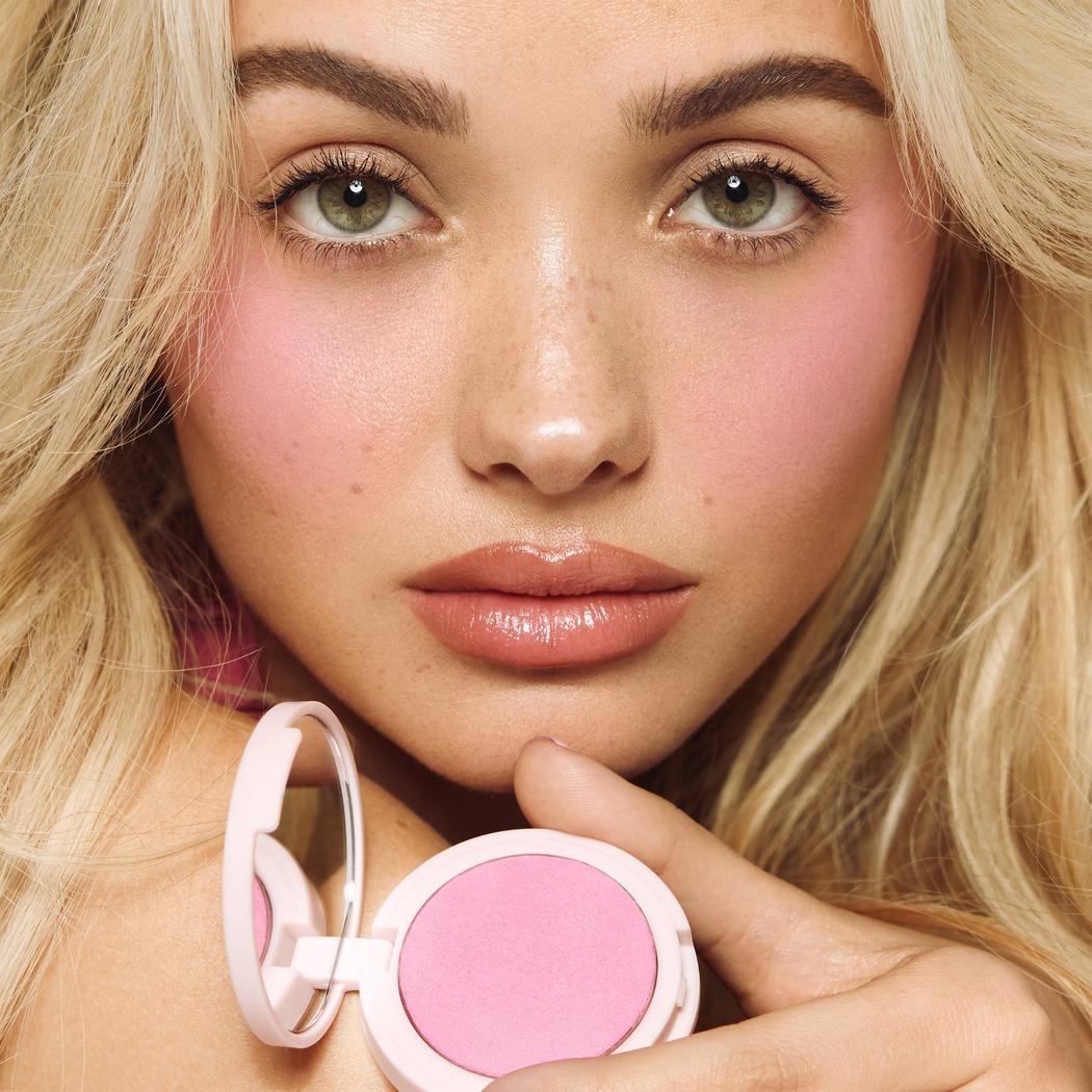 Apply the blush to the cheeks for an instant pop of color, building up as desired for a more intense look.