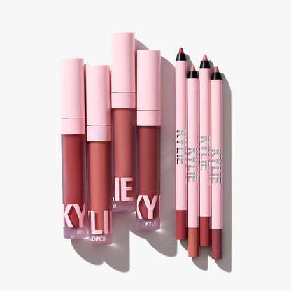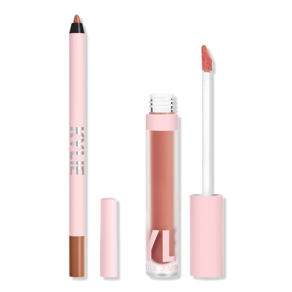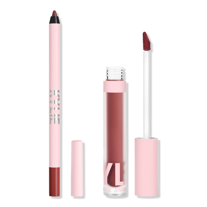 The KYLIE COSMETICS Lip Blush Kit is your essential lip routine designed to achieve a matte lip with a lighter, blotted finish. Featuring a creamy Lip Liner for 24-hour wear and a lightweight Lip Blush that provides a sheer wash of color, this kit is perfect for creating a customizable lip look.