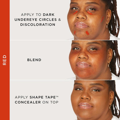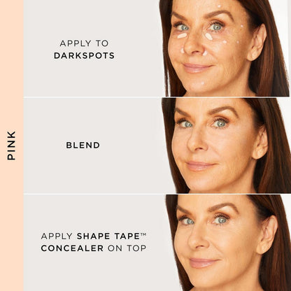 Simply swipe the corrector directly onto the area of concern and blend using your fingers, a sponge, or a brush. For a polished finish, layer with Shape Tape Concealer.