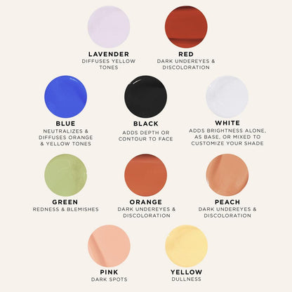 - Effectively cancels blemishes, dark spots, discoloration, redness, and dark undereye circles