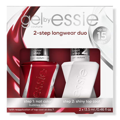 Easy application & removal. Achieve a gel-like manicure in 2 easy steps. Up to 15 days of gel-like wear.* Step 1: apply 2 coats of gel couture by essie long lasting nail polish. No base coat is needed. Step 2: apply 1 coat of gel couture by essie top coat. No UV lamp is needed.