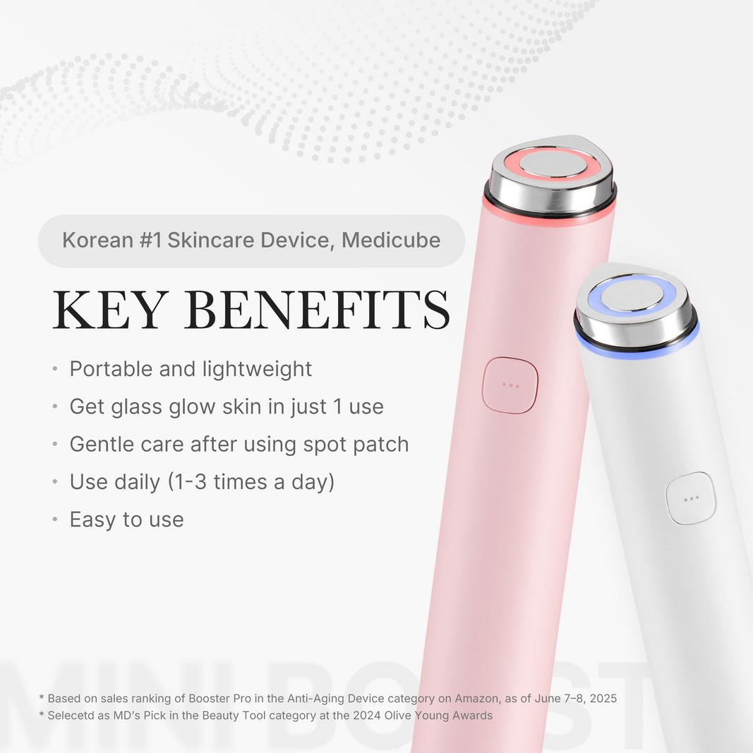Medicube's Mini Booster Pro is a portable glow booster designed for intensive soothing care for troubled skin. This powerful yet gentle device enhances your skincare routine, providing immediate results for a radiant complexion.