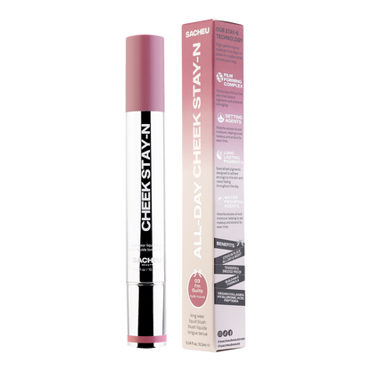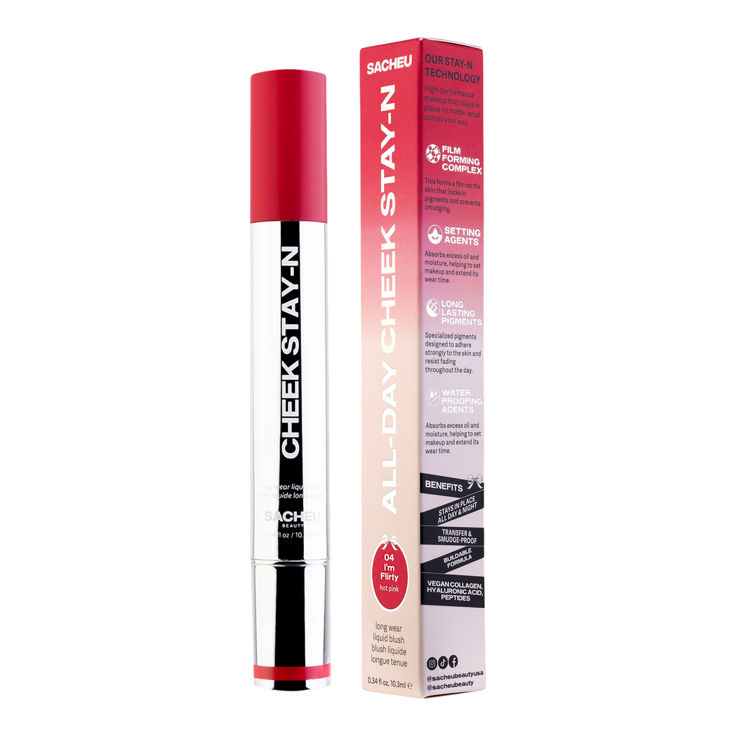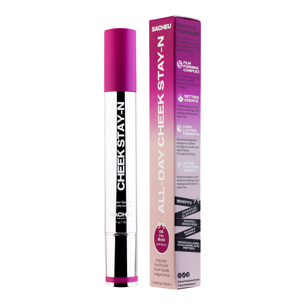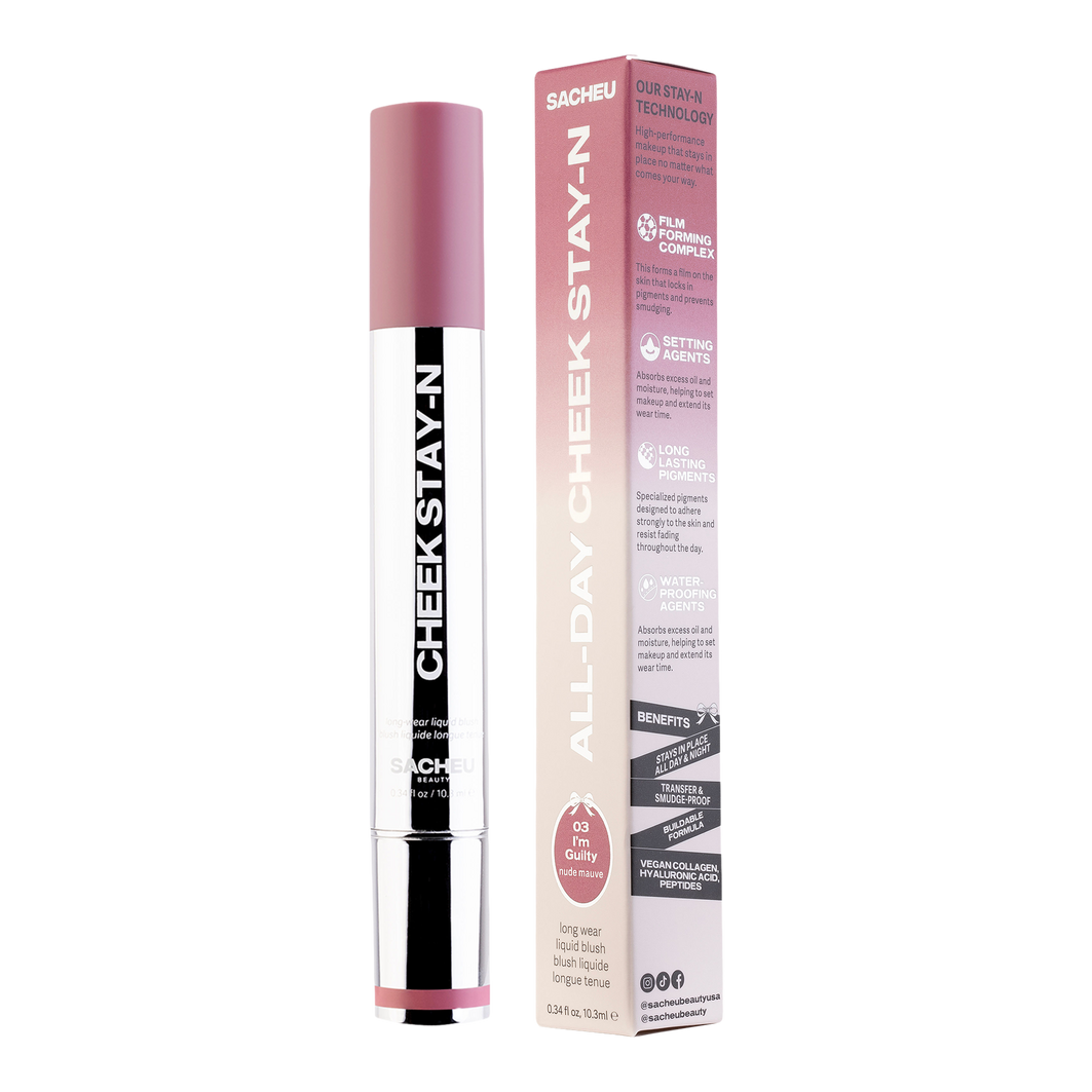 The SACHEU Beauty CHEEK STAY-N All-Day Liquid Blush is a versatile liquid blush designed for all-day wear. Its ultra-blendable and buildable formula provides a natural, healthy flush with a radiant dewy finish, while nourishing skin-loving ingredients enhance your complexion.