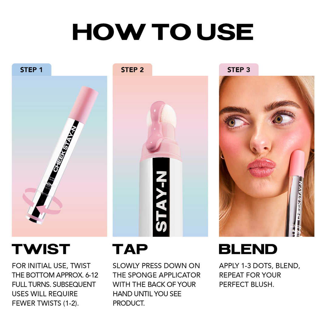 PRO-TIP: When using the product for the first time, twist the base several times until the blush reaches the applicator. Discontinue use if redness or irritation occurs. Do not ingest.