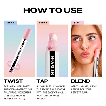 Step 1: Twist the bottom of the tube to dispense the liquid blush through the sponge tip.