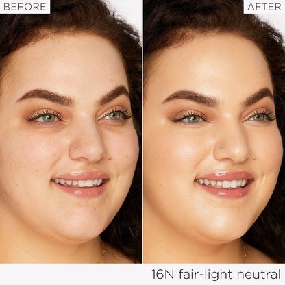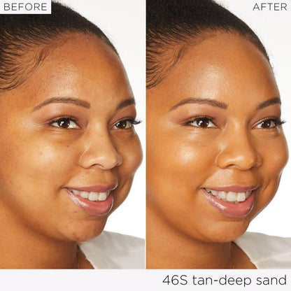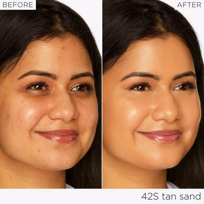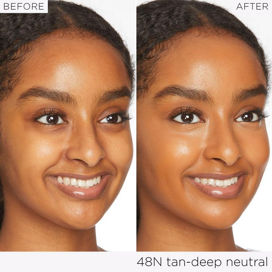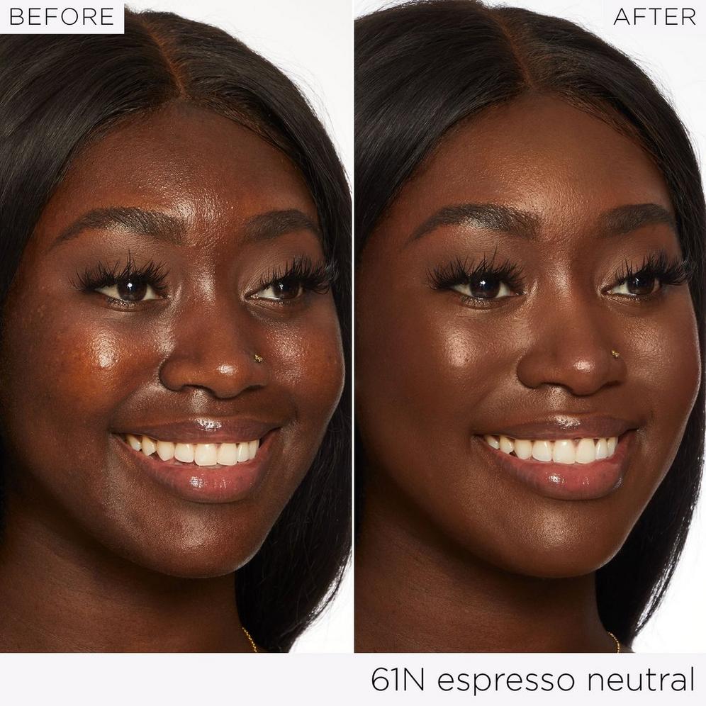 Squeeze a small amount onto the back of your hand and dot evenly onto your face. Using a dense brush or your fingers, blend in circular motions, starting from the center of your face and working outward. For added coverage, pair with a creaseless concealer.