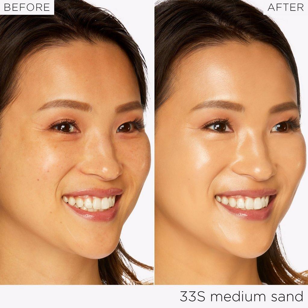 - Medium flexible coverage with a dewy-radiant finish for a healthy-looking glow